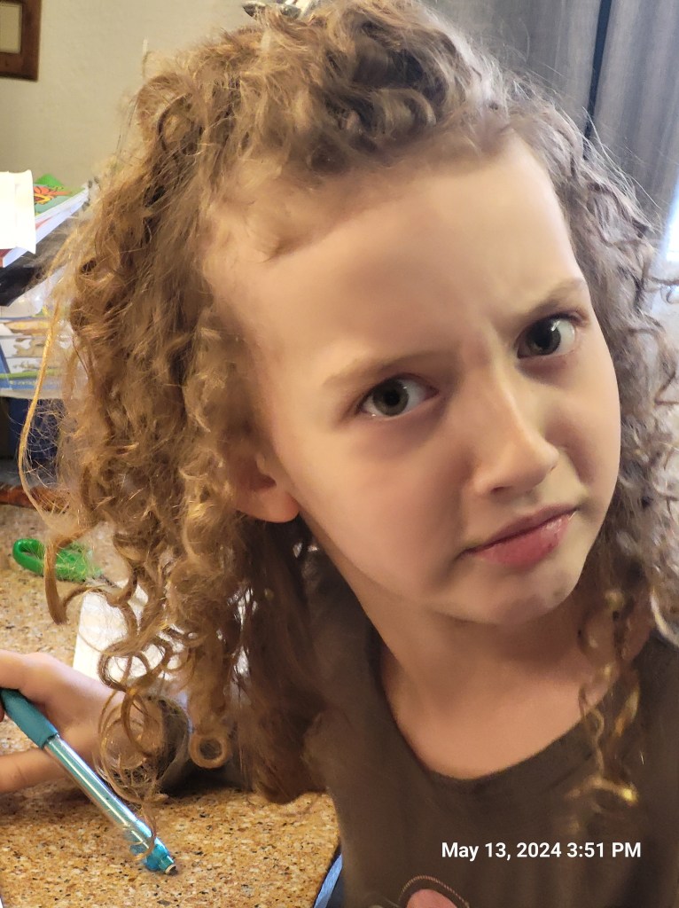 Elektra turned 9, which is also a big deal, but different. She is smart and beautiful. She’s also a perfectionist. She is home-schooled, so we don’t have to say things to her like, your teacher likes you. (I love her) or grade cards for getting straight As. I don’t give her a grade card. She’s competing only with herself. As she finishes one grade of books, she moves to the next without fanfare. This keeps her stress levels pretty even. Sometimes… (see that face?)
